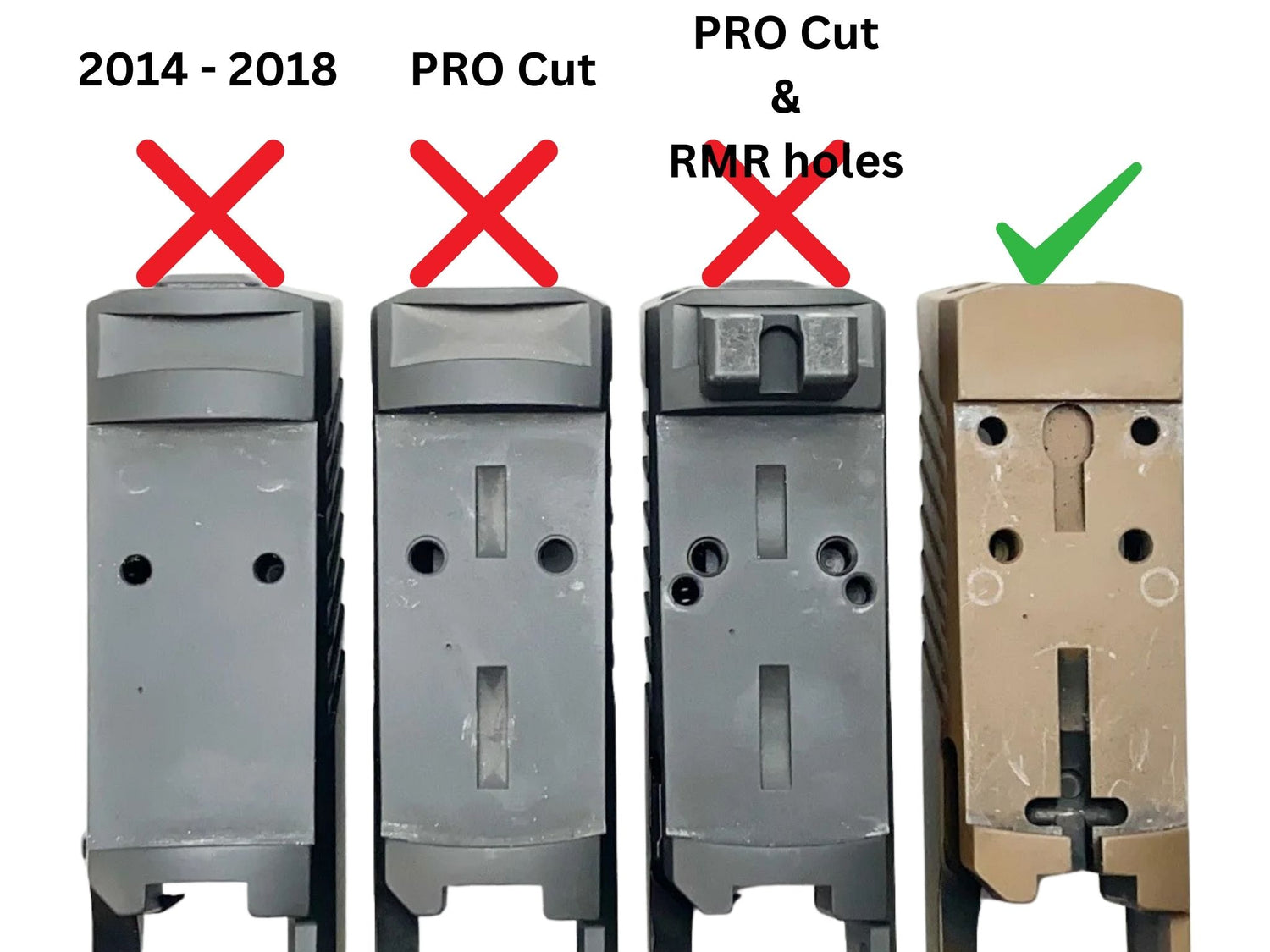 Looks like this optics mounting plate checks all of the boxes, fits a Beretta GTS full size and will allow you to mount a Trijicon SRO perfectly, almost. Everything fits as the compatibility chart says, except that when mounted, the front 1/4”-3/8” of the SRO overhangs the ejection port of the slide. Spent shells would bang the bottom of the SRO, total waste of time, ordering and trying to return it and get a credit.