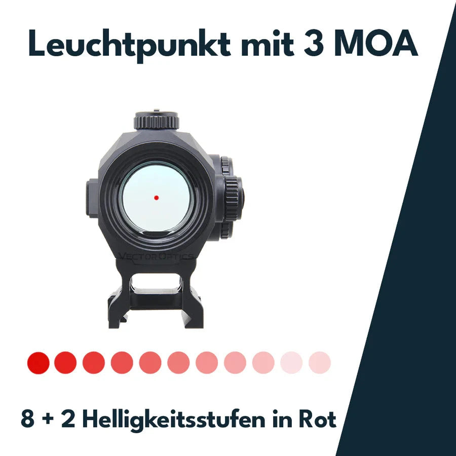 • Adjustment range: > 45 MOA windage / > 45 MOA elevation