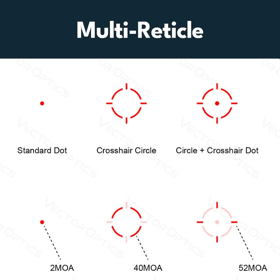 It also offers three selectable reticles, a motion sensor (auto shut-off after 2 minutes of inactivity, and it turns back on as soon as the optic is moved), and a total of ten brightness settings (including 2 night-vision levels).